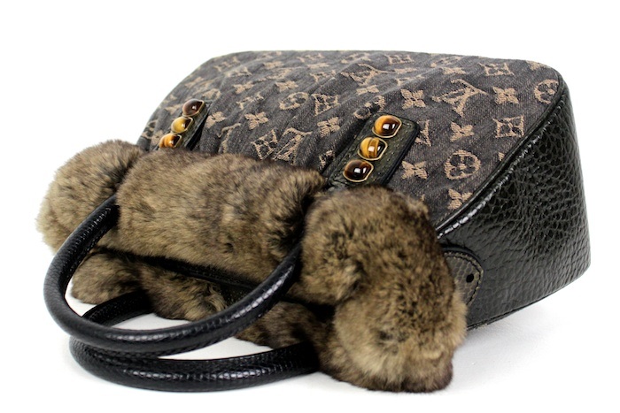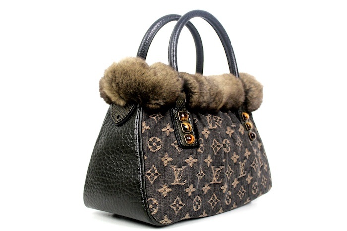Don't miss out on your opportunity to own this extremely rare Louis Vuitton Limited Edition Denim Chinchilla Trapeze PM Bag. This stunning bag is from the Vison Matelasse Monogram Mousseline Fall/Winter 2005 collection and features gorgeous and amazingly soft brown chinchilla fur, black monogram denim and lizard and python trim.