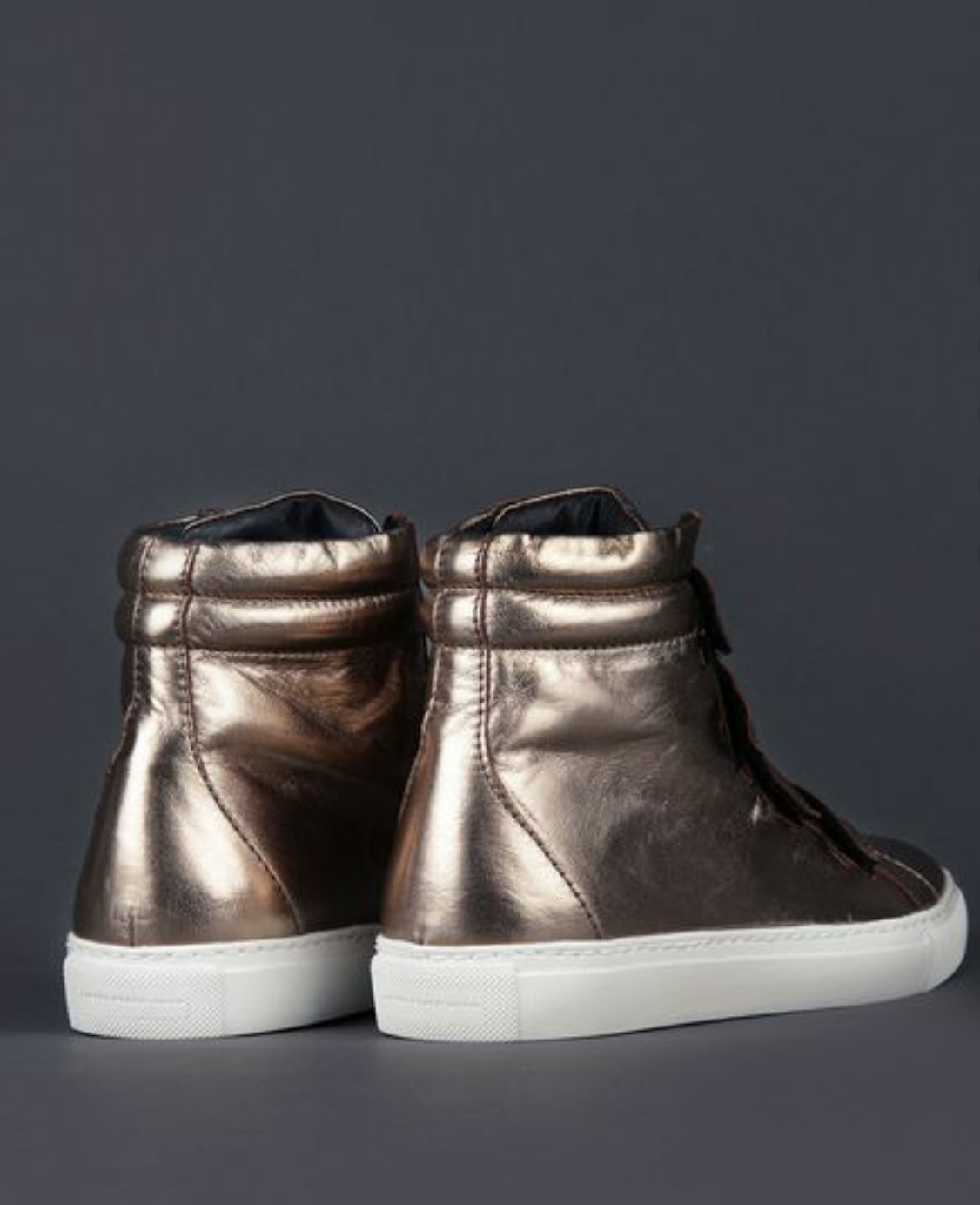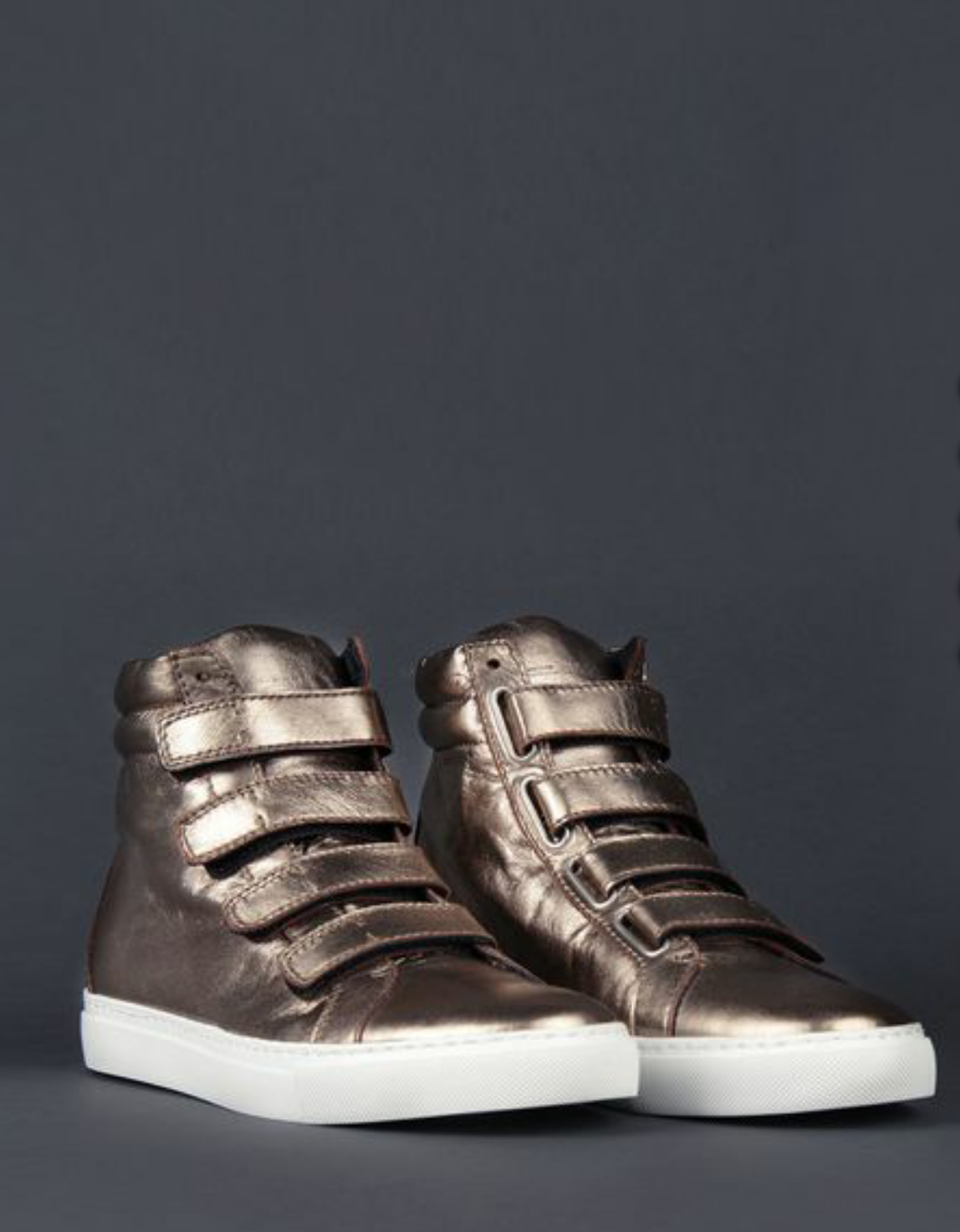 High tops are all the rage this season. Our Diesel Black Gold high tops come with white bottoms and four velcro straps. Rock these shoes with dresses or jeans.