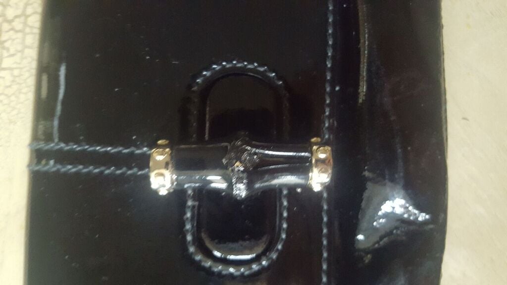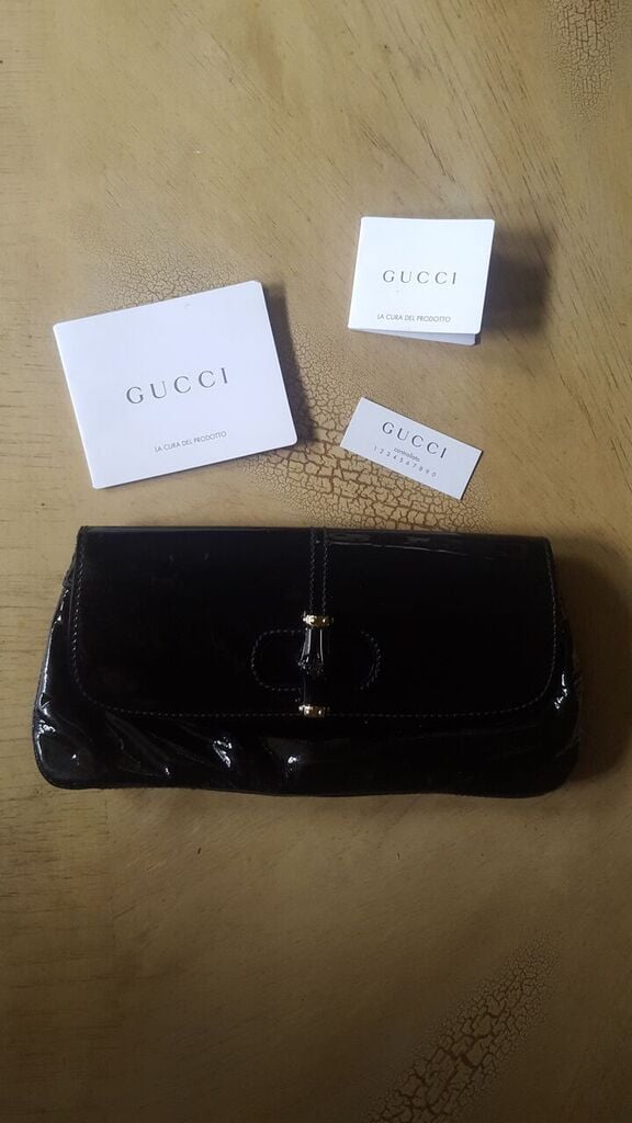 Super cute bamboo patent leather Gucci clutch. Preowned with signs of use. Please review photos. Overall good condition. Ships without dust bag or box.