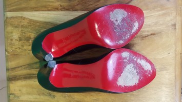 Black round toe well used pump. Marked a size 35.5. Ships without box or dust bag.