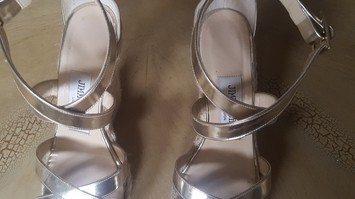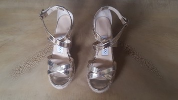 Size 35 metallic Jimmy Choo wedges. Good preowned condition ships without box or dust bag.