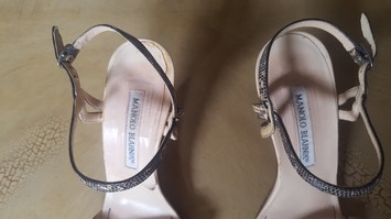 Gently used Manolo Blahnik python heels. Marked a size 35.5. Excellent condition, ships without box or dust bag.