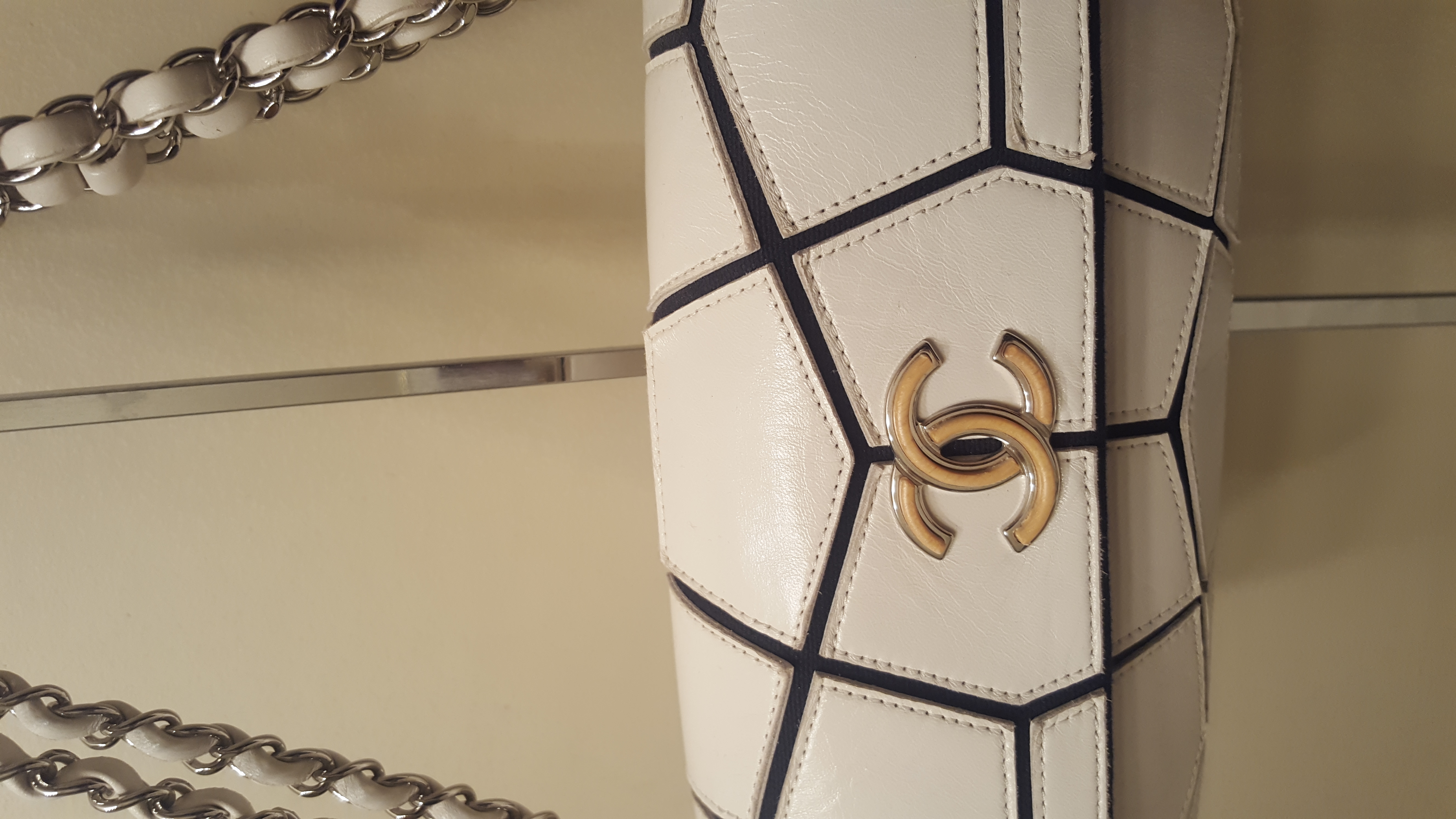 Chanel limited edition small chain strap handbag. In good preowned condition, feautures wooden magnetic closure. Adjustable double straps, and crackled leather detail. Ships without box or dust bag.