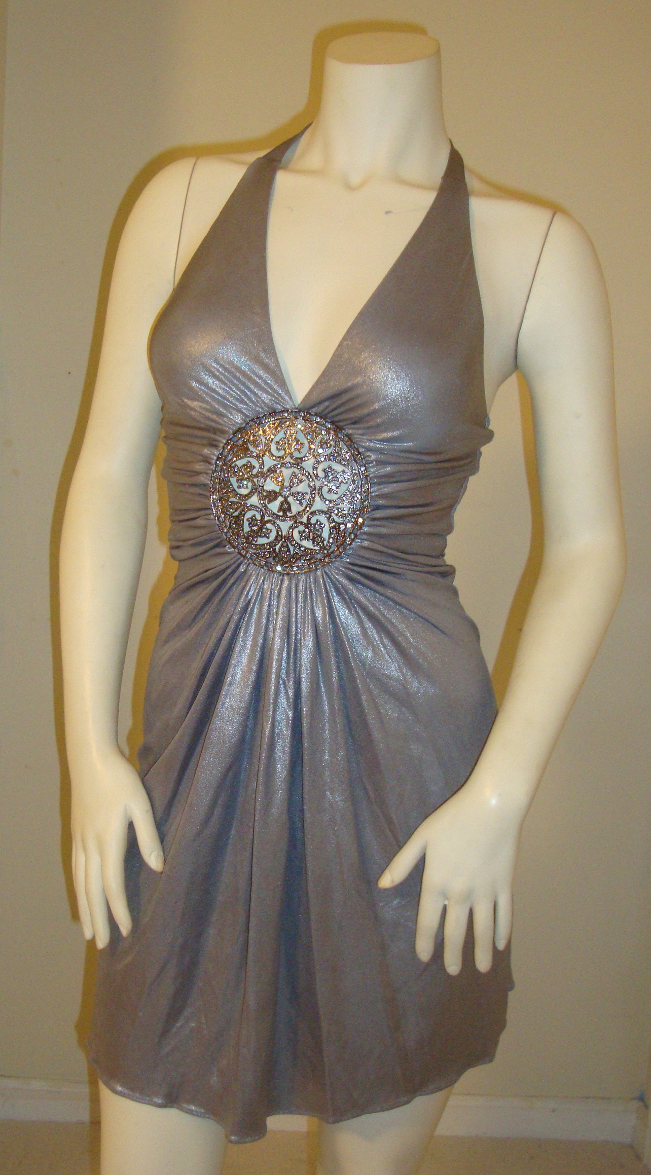 Stunning size small dress by Sky. This is never worn however has a few snags from storage as well as missing rhinestones as seen in the photos. Dazzle the crowd in this daring number by Sky.