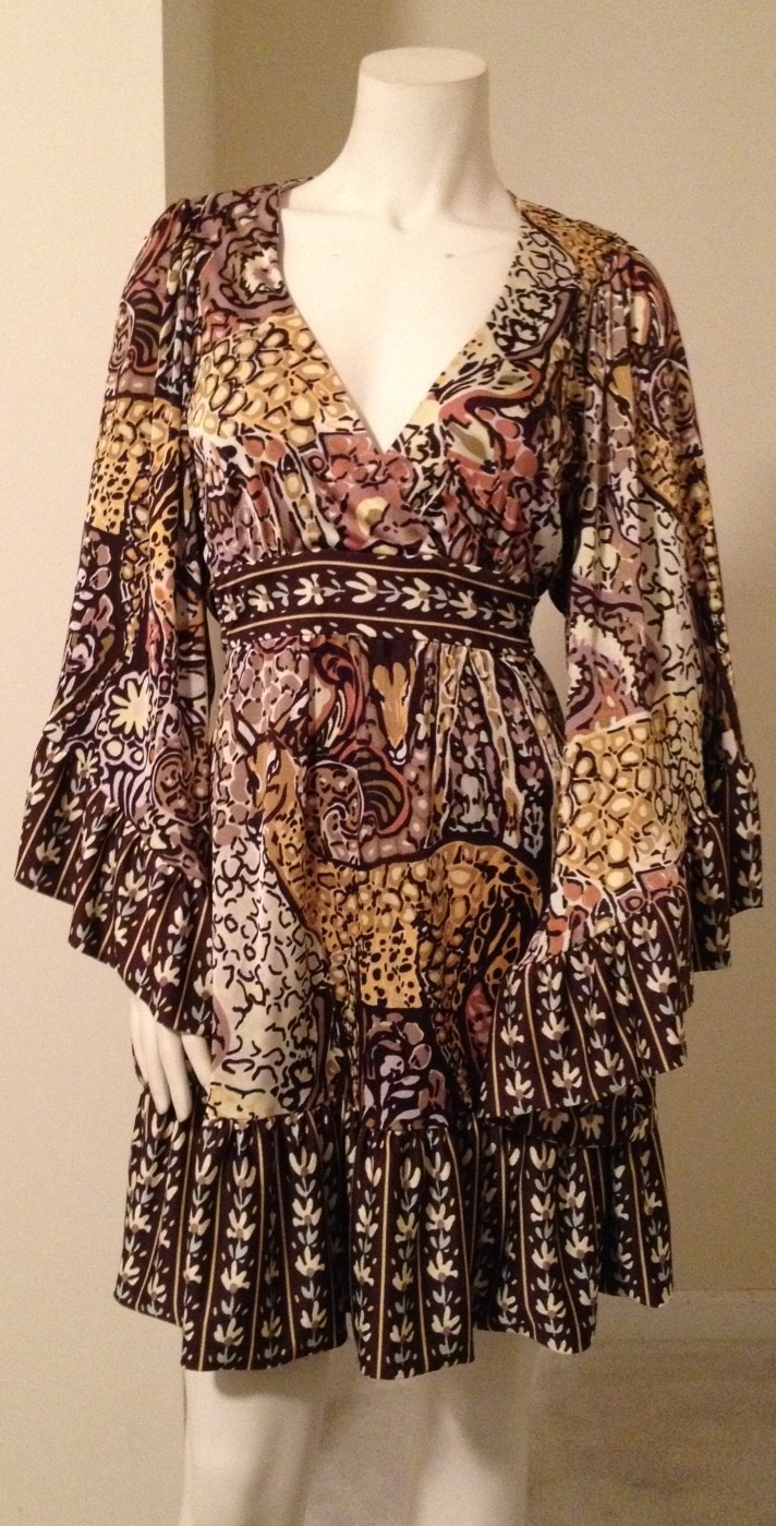 Get in touch with your inner hippie in this gorgeous Betsey Johnson dress. Size 10, beautiful flowing jersey dress. Ties at back. Photos truly don't do this justice.