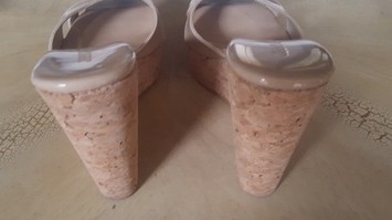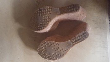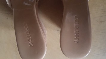 Jimmy Choo size 35 tan patent wedges. Preowned with general signs of use.