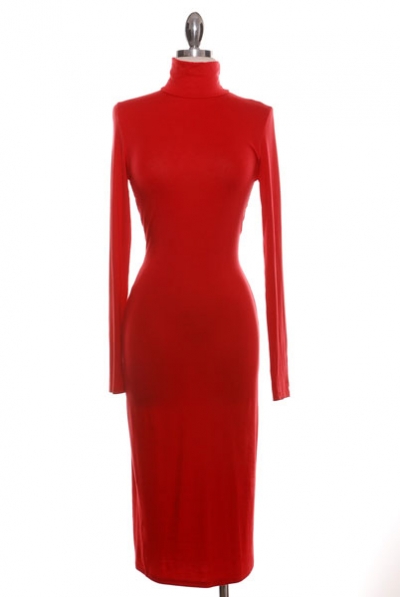 A great classic wardrobe consists of a turtleneck dress. This flattering midi turtleneck dress is 96% rayon, 4% spandex, machine washable and 100% fab!